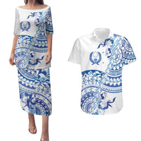 Placeholder Pohnpei Liberation Day Couples Matching Puletasi and Hawaiian Shirt Polynesian Floral Tattoo - Polynesian Pride