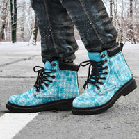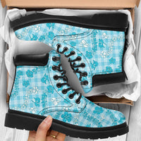 These boots aren’t just footwear — they’re a statement. Designed for those who want all-day comfort, bold style, and sustainable craftsmanship, Polynesian Pride Polu Aloha Hawaii All Season Boots Plumeria Lei With Palaka Motif brings durability and originality together in one pair of custom-made boots.