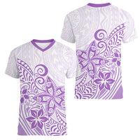 Placeholder Polynesia Women V Neck T Shirt Plumeria Lavender Curves LT7 - Polynesian Pride