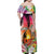 Design: The elegant off-shoulder design features vibrant, intricate patterns inspired by tropical island life, adding a touch of sophistication to any occasion.