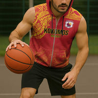 Stay active and stylish with the Queensland Papua New Guinea Custom Sleeveless Zip Hoodie All Red Pacific PNG Tribal Style from Polynesian Pride. Designed for those on the move, this sleeveless zip hoodie blends flexibility, breathability, and a sleek look. Perfect for workouts, outdoor activities, or casual wear, it’s a wardrobe essential that works as hard as you do.
