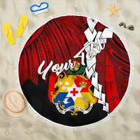 Tonga Polynesian Custom Personalised Beach Blanket - Tribal Wave Tattoo Flag Color