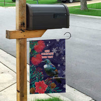 Tui Meri Kirihimete Personalised Garden Flag Pohutukawa Flowers Blue Motif