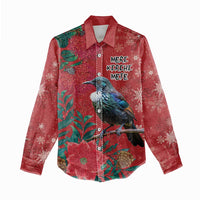 Tui Meri Kirihimete Personalised Women Casual Shirt Pohutukawa Flowers Red Motif LT9