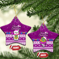 Tuvalu Christmas Ceramic Ornament Snowman Hugs Tuvalu Coat of Arms Maori Pattern Pink Style