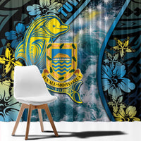 Placeholder Tuvalu Window Curtain Dolphin On The Waves - Polynesian Pride