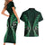 Aotearoa Pounamu Niho Couples Matching Short Sleeve Bodycon Dress and Hawaiian Shirt Silver Fern Mix Maori Pattern - Green