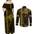 Custom Hawaii Couples Matching Off Shoulder Maxi Dress and Long Sleeve Button Shirt Ukelele and Hula Girl Mix Kakau Pattern LT03