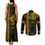 Custom Hawaii Couples Matching Tank Maxi Dress and Long Sleeve Button Shirt Ukelele and Hula Girl Mix Kakau Pattern LT03