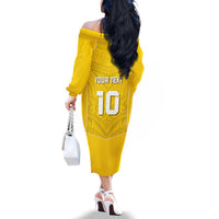 Custom Niue Rugby Family Matching Off The Shoulder Long Sleeve Dress and Hawaiian Shirt Hiapo Tribal Motifs Sporty Style