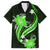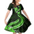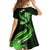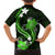 Green Polynesian Pattern With Tropical Flowers Family Matching Off Shoulder Long Sleeve Dress and Hawaiian Shirt