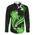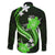 Green Polynesian Pattern With Tropical Flowers Family Matching Off Shoulder Long Sleeve Dress and Hawaiian Shirt LT05