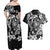 Guam Dolphins Tribal Tattoo Couples Matching Off Shoulder Maxi Dress and Hawaiian Shirt Polynesian Art and Tropical Flower Grayscale LT03