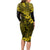Hawaii King Kamehameha Long Sleeve Bodycon Dress Polynesian Pattern Yellow Version LT01