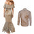 Hawaii Monk Seal and Map Couples Matching Mermaid Dress and Long Sleeve Button Shirt Polynesian Kanaka Maoli Beige Vibe LT9