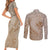 Hawaii Monk Seal and Map Couples Matching Short Sleeve Bodycon Dress and Long Sleeve Button Shirt Polynesian Kanaka Maoli Beige Vibe LT9