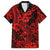 Hawaii Shark Family Matching Off Shoulder Long Sleeve Dress and Hawaiian Shirt Polynesian Pattern Red Version