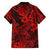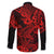 Hawaii Shark Family Matching Off Shoulder Long Sleeve Dress and Hawaiian Shirt Polynesian Pattern Red Version LT01