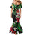 Hawaiian Tropical Flowers and Maile Pikake Family Matching Mermaid Dress and Hawaiian Shirt Polynesian Tribal Pattern Black Color LT03
