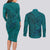 Hawaiian Whales Polynesian Art Motifs Couples Matching Long Sleeve Bodycon Dress and Long Sleeve Button Shirt Turquoise Color LT03