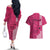 Maui Island Couples Matching Off The Shoulder Long Sleeve Dress and Hawaiian Shirt Kakau Tribal Mixed Polynesian Pattern Pink LT9