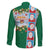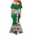 Merry Christmas Family Matching Mermaid Dress and Hawaiian Shirt Funny Santa Claus Cards Photo and Polynesian Pattern Green Color LT03