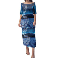 Placeholder New Zealand Matariki Family Matching Puletasi and Hawaiian Shirt Taniko Aramoana With Koru Galaxy Sky Night - Polynesian Pride