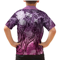 Pacific Beauty Girl Family Matching Mermaid Dress and Hawaiian Shirt Pink Polyneisan Tribal Vintage Motif