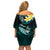 Personalised Hawaii Off Shoulder Short Dress Polynesian Shark with Kakau Turquoise Version LT01