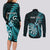 Personalised New Zealand Darts Couples Matching Long Sleeve Bodycon Dress and Long Sleeve Button Shirts Happiness Is A Tight Threesome Maori Turquoise