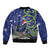 Personalized New Zealand Pukeko Christmas Sleeve Zip Bomber Jacket Meri Kirihimete Taniko Ponga Koru Blue LT14