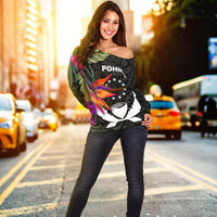 Placeholder Pohnpei Women's Off Shoulder Sweater - Polynesian Hibiscus Pattern - Polynesian Pride