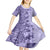 Polynesia Kid Short Sleeve Dress Hibiscus and Hawaiian Tribal Tattoo Retro Style Violet Color LT9