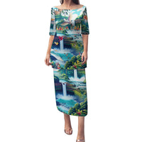 Wailua Falls Hawaii Family Matching Puletasi and Hawaiian Shirt Kauai Natural Beauty DT02