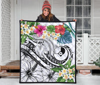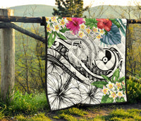 YAP Polynesian Premium Quilt - Summer Plumeria (White)